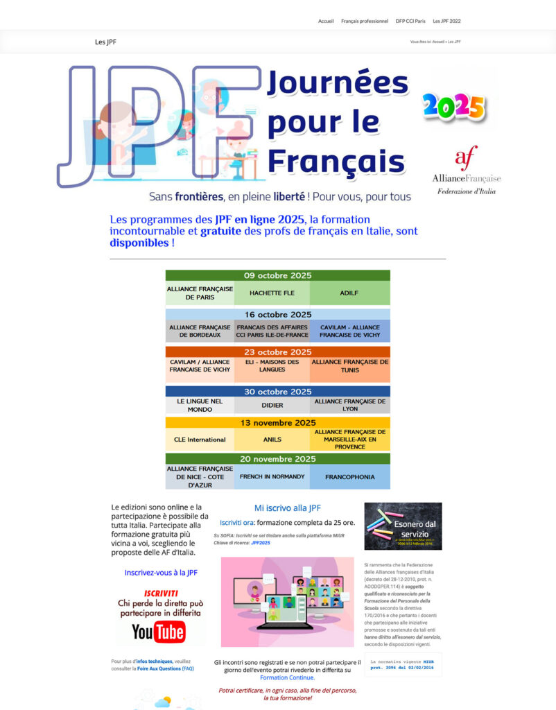 Scopri il programma completo sul sito ufficiale: www.alliancefr.it/formazione/les-jpf